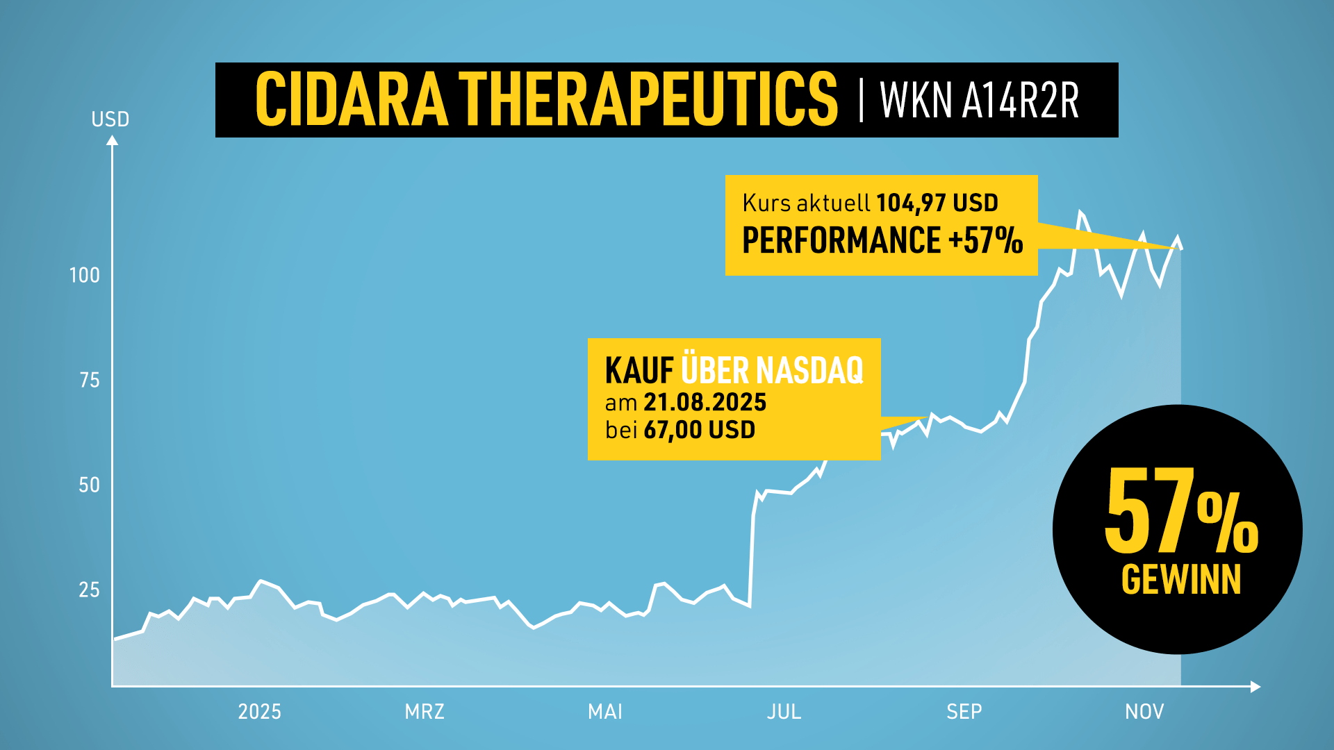 +57% in 11 Wochen vom 21.08.2025 (Kauf über Nasdaq) bis heute (aktuelle Stand).
